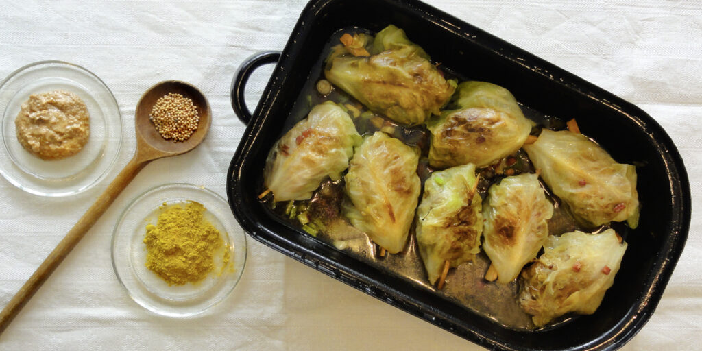 Diese Krautwickel überzeugen mit zartem Kohl und einer aromatischen Füllung, die durch feine Senfnoten perfekt abgerundet wird. Unser Senf-Mehl sorgt für eine angenehme, ausgewogene Würze, während das Braten in hochwertigem Erdnussöl eine schöne Bräune und ein rundes, leicht nussiges Aroma verleiht.