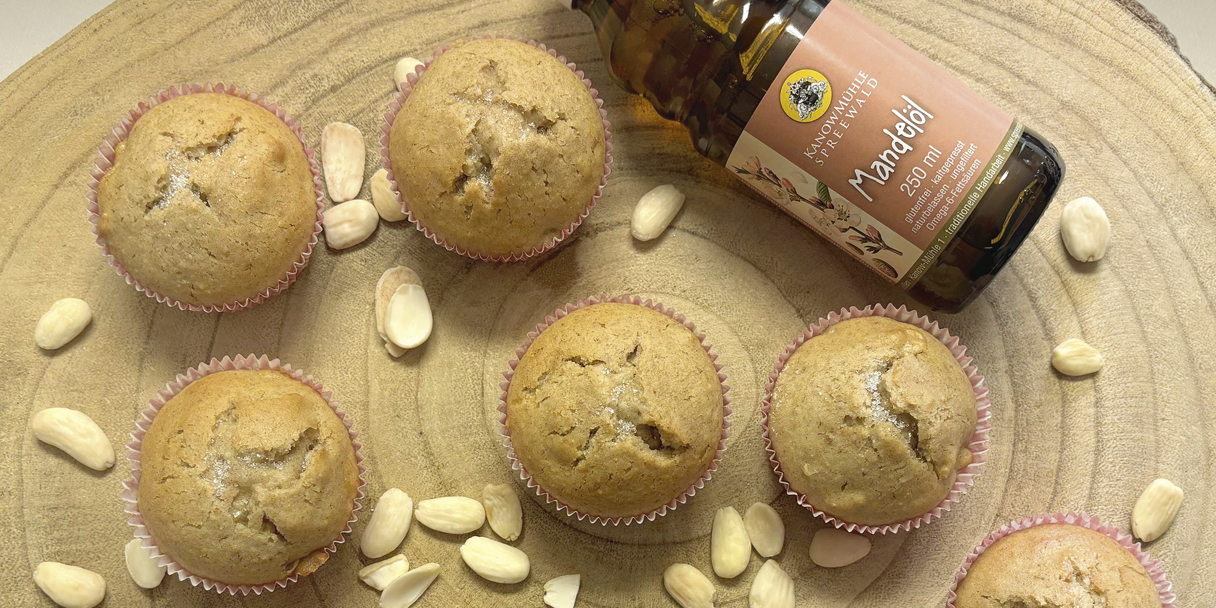 Diese Mandel-Muffins vereinen eine wunderbar lockere Textur mit einem feinen, natürlichen Nussaroma. Mandel-Mehl sorgt für eine besonders saftige Krume und leichte Süße, während unser hochwertiges Mandelöl den Muffins eine elegante, aromatische Note verleiht und die zarten Mandelnuancen intensiv hervorhebt.